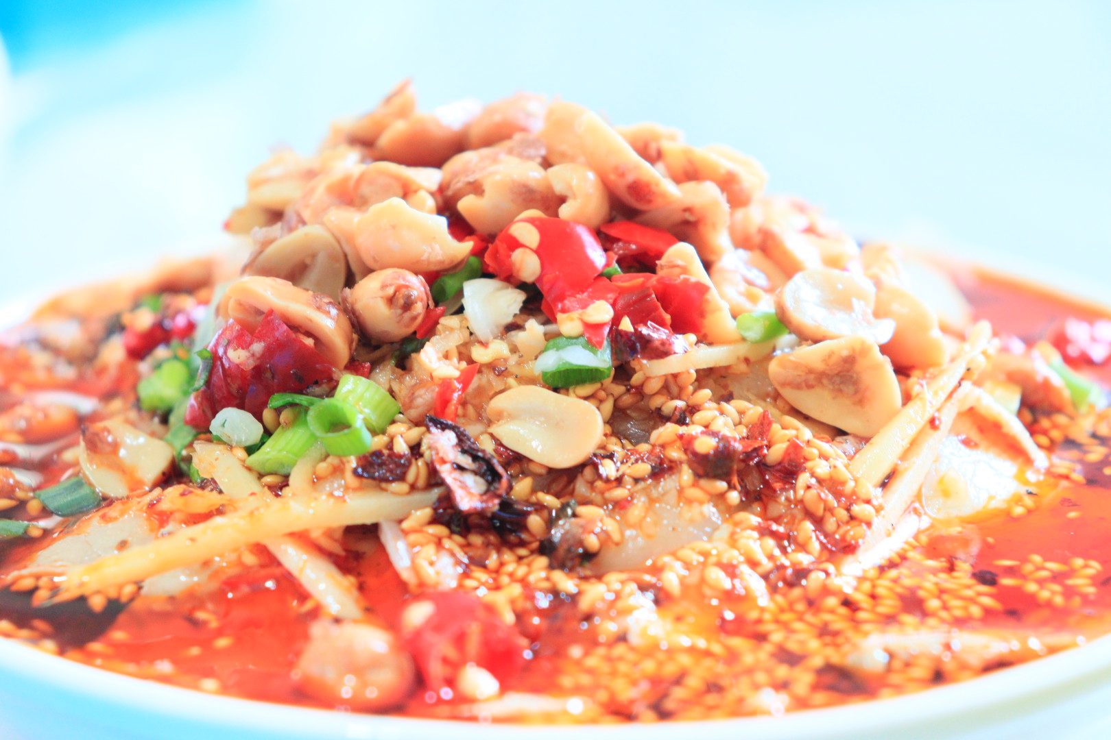 川菜作为八大菜系之一,有着“一菜一格,百菜百味”的美誉,其搭配巧妙、灵活多变,创造出了麻辣,酸辣等近百种各具特色的复合口味。俗话说“酒香不怕巷子深”,实践团此次来到成都,寻找到一个入口坐落于成都小巷子的一个川菜馆,一眼望去是浓厚的烟火气息与市井生活感。实践团成员们不仅受到了老板的热情招待,还品尝了许多美味的川菜,而蒜泥白肉就是其中的一道。白肉最早记载的资料是宋代盂元老的《东京梦华录》。白肉从北方传入四川,被四川人加以独特的调味料,便有了这道名菜。肥瘦相间的白肉,切成薄而大张的肉片,再淋上独特的调味料,满口是鲜与香,薄薄的一片肉裹上酱汁,入口更是“精彩纷呈”,真的做到了肥而不腻。除此外,川菜中的宫保鸡丁、辣子鸡等也是各具特色。